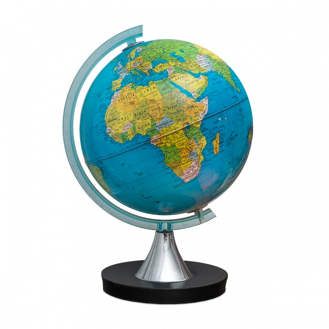 El globo terráqueo al tener una forma esférica nos representa muy bien los continentes, mares y océanos del planeta y es la forma que más se acerca a la realidad. En este podemos diferenciar el Polo Norte, el Polo Sur y el Ecuador. Pero como es muy poco práctico, muchos geógrafos se decantan por los mapas aunque tengan alguna deformación de la superficie debido a que pasar una forma esférica a una forma plana es muy difícil.